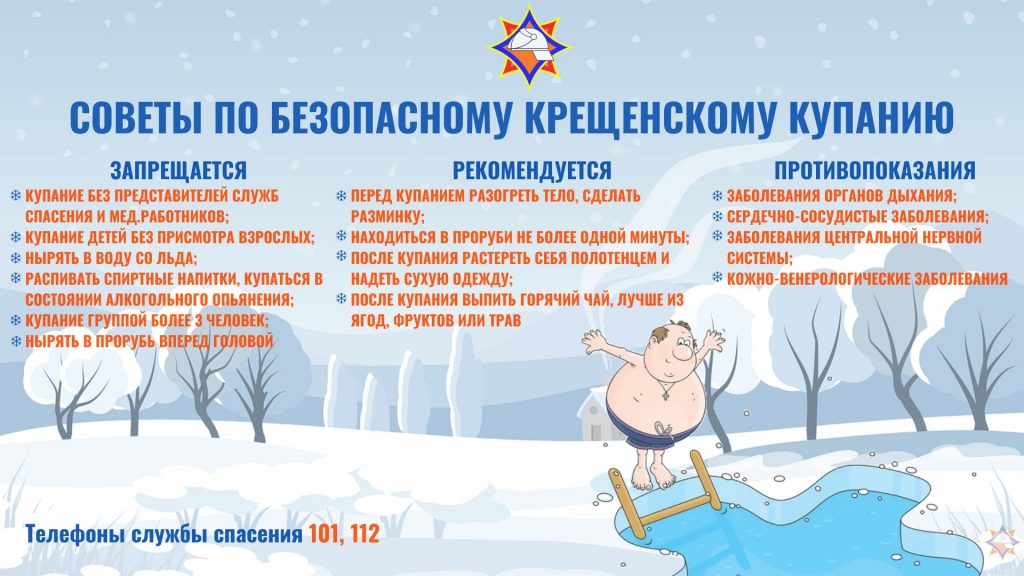 В целях обеспечения безопасности населения на водных объектах, информируем о правилах купания в проруби (иордани), а также правилах поведения на льду: