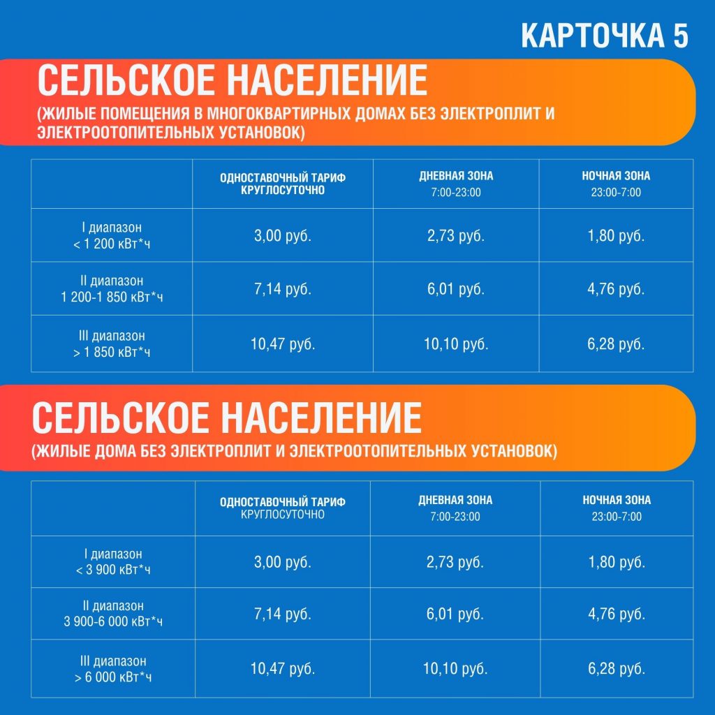 Для удобства граждан энергетики также разработали карточки с распределением по тарифным группам населения и приравненных к нему категорий потребителей по ХМАО-Югре, ЯНАО и Тюменской области.